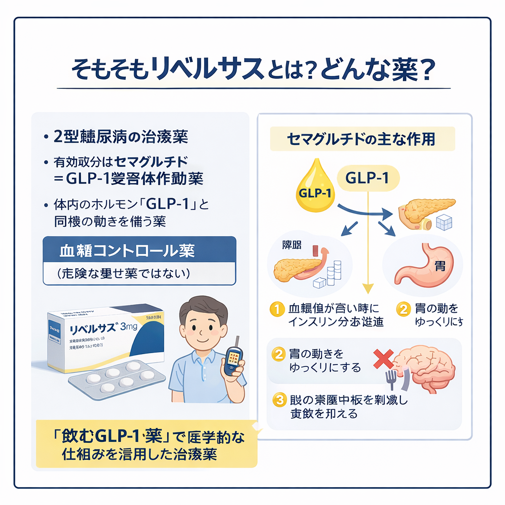 つまり、リベルサスは「危険な痩せ薬」ではなく、医学的な仕組みに基づいて作用する血糖コントロール薬なのです。